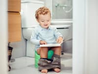 It fits snuggly under your toilet so it doesn’t take up any precious real estate if you have a smaller bathroom, it’s wide and stable for smaller legs that aren’t self-assured, it’s always right there so it minimizes potty accidents while you’re fumbling to get their potty gear in place, and—as a bonus—Mom and Dad can use it too. Pair it with a convertible toilet seat like this one by Top Seat for a bathroom that is potty-training ready from the get-go.