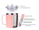 Light weight easy grip travel mug modern design and suitable size for easy griping designed for car cup holders slim and suitable weight for easy carrying out everyday Longlasting and super robust powder coating keep its stay colorful finish and look more elegant and noble Bright and romantic color is a perfect gift to yourself your family and friends