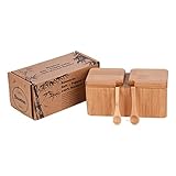 Estilo 100% Natural Bamboo Salt and Spice Box with Lid Set 2
