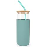 perfect for any drink the glass water bottle is perfect to be filled in any coldhot juices smoothies tea water and more on the go the 16oz glass tumbler is easy to take on the go Bamboo lid with silicon ring attaches to the glass firmly to be splash proof Silicone sleeve protects against chips and cracks