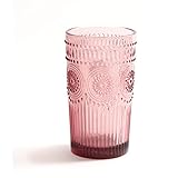 The Pioneer Woman Adeline 16-Ounce Emboss Glass Tumblers, Set of 4 – Plum