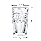 Jomop - Dimensions approximately 4 inch height holds approx 10 oz Diameter measures approximately 33 inch Keep your meal relaxed and sociable by letting guests pour their own drinks and choose their own tumblers and glasses Colorful glass embossed wine cup retro heat resistant water cup creative wine glasses whiskey tea straight drink mug set the table for summer 4 pcs set water glass vintage multicolor creative relief home small beverage fruit juice beer cup cold drink tea milk wine glasses