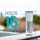 Maars® Drinkware - Temperature control advanced ultrasonic sealed double wall technology keeps cold beverage chilled and hot drinks toasty with temp rating up to 175 deg f Easy to clean top rack dishwasher safe easy to use for on the go smoothies teas fruit infused water for yourself or kids Bring it with you to the park office work or simply use at home Versatile design clear body is perfect for customizing to your style for all events including birthdays parties weddings or simply gifted for family and friends