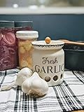 Farmhouse style garlic keeper 45 x 35 in sizetired of messy garlic cloves on the counter that go bad too quick Our farmhouse garlic container is a cute practical way to keep garlic fresher longer The garlic keeper for counter has a ventilation design which keeps the garlic cool and dry Plus our bamboo lid can protect the garlic from being exposed to the sun light increasing its shelf life Great gift for her who doesnt want a cuter kitchen Our garlic keeper is a great accent piece to match any farmhouse style kitchen and also is practical Make sure to get our garlic storage jar to make her smile for a birthday christmas or mothers day gift