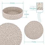 Quantity size description4 heat insulation pads with a diameter of 7 inches and a kitchen storage basket with a diameter of 8 inches Products thickness is 032 inches You can put the hot pot coffee teapot and cooking plate on the mat Its size is suitable for most items superior and aesthetic
