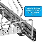 Sturdy the pan lid organizer made of strong steel construction with elegant chrome finish rust resistant and durable Its very easy to use supports heavier pans bakewares cutting boards sturdy
