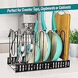 Greatly helps to organize your cookwareyou no longer have to worry about your kitchen being a mess and unable to find your cookware when you need it our pot organizer rack will help keep your pots pans lids trays plates cookie sheets and cutting boards well organized and easy to reach great pots and pans organizer under cabinet