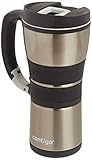 THERMOS - Cool to the touch with hot liquids sweatproof with cold Durable stainless steel interior and exterior Builtin tea hook easily holds tea bags or most loose leaf infusers Fits most automobile cup holders single serve compatible Thermos vacuum insulation technology for maximum temperature retention hot or cold