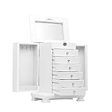 Rowling Large Wooden Jewelry Box Earrling Necklace Bracelets Organizer 6 Drawers M10 (WHITE)