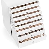 Everything at hand no more hunting through the dresser to find your necklace or earrings with all your jewels organized in this 8layer jewelry box now you can enjoy a few peaceful and glorious moments for yourself Welcome all necklaces go on the hooks earrings in the cubes rings in the slots watches around the pillows what else With 8 drawers in 7 different layouts the large jewelry organizer brings all your treasures big or small under control once and for all
