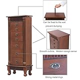 FDW - The delicate makeup mirror and velvet liner the jewelry chest under top lid is there a large rectangular mirror jewelry armoire mirror is large enough for you to check your makeup and putting on your necklaces and earringsJewelry cabinet velvet liner is moisture and corrosion resistant and offers a clean storage environment for jewelry Jewelry organizer stand jewelry cabinet with mirror jewelry armoire Elegant and classic streamlined design elegant and classic wooden jewelry cabineton each small metal drawer handle are there exquisite decorative patterns which looks beautiful and convenient for opening or closing drawersJewelry armoire has two side doors with eight hooks are closely and tightly connected with the main cabinet with highquality hingethe jewelry cabinet storage has 7 drawers provides sufficient room for storing and displaying your jewelry