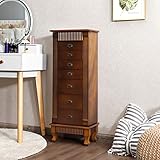Giantex - 1 top flip mirror and 4 compartments for organized displaythere is a partitioned storage area on the top of the cabinet a small compartment with soft lining for ring storage and other 3 partitions can be used for various small objects to be placed There is a lid at the top to prevent the accumulation of dust and with this lid the cabinet looks beautiful The lid has a makeup mirror and the height of the cabinet is 39 inches which is suitable for most people 7 drawers to keep your items in order this jewellery cabinet has 7 drawers The height of the 1st to 4th drawers is the same The 4 drawers are spaced and designed for various small accessories and watches The 5th to 7th floor height is 45 inches suitable for a slightly larger item and the storage space is sufficient to meet your daily storage needs keeping your items neat and orderly