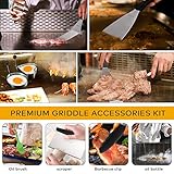 Vomelon - Chef choice griddle spatula set made from food grade stainless steel for durability featuring heatresistant abs handle for a comfortable grip we increase the thickness of the hibachi grill accessories for better performing on flipping burgers or picking up larger food from the grill or griddle Complete professional griddle tools set the premium grill tool set has all the griddle tools you need for backyard griddle cooking including 2 griddle spatulas burger spatula turner scraper basting covers tongs egg rings bottles carring bagsFeatures all of the griddle accessories you need to cookout like a chef