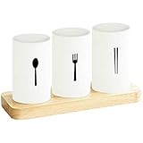 Ideal for storing utensils knives forks dough scrapers spatulas spoons tongs and more suitable for storing and storing your favourite cooking utensils on the countertop This cutlery holder can keep your kitchen table great gift for home kitchen