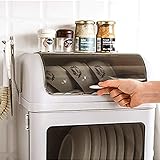 PLAFUETO - Satisfaction guarantee if you have any questions about the cutlery drainer please feel free to contact us No problem click add to cart to order now Please note plates and other accessories are not included Simple and tidy humanized chopping block lid stored in order The bottom drain is designed to keep the bowl and plate dry Twoinone tool holder with multiposition design to meet your needs The side hook design makes it easy to store all kinds of small items and is more convenient to use High quality material it is made of high quality pp plastic which is durable and not easy to age The transparent dust cover is designed to be clean and hygienic and the tableware is kept clean at all times