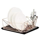 Kitchen Details Geode Deluxe Dish Drying Rack with Drain Board, Cutlery Basket, Iron Frame, Copper