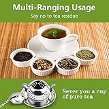 K Kitcherish - Multifunctional this tea strainer is suitable for all types of tea leaves such as black tea green tea rose tea jasmine tea or other iced teas and hot teas it is also applicable for your own customized herbs spices juices etc Please attention although it can also for coffee brewing but not perfectly for finely ground coffee Sets for gifts each package of our tea strainer includes 1x pushon lid 1x ultrafine mesh cup and 1x tray Tea strainers are a musthave for all tea lovers They are also perfect gifts for various holidays and leisure occasions Imagine putting some tea leaves in it pouring in with freshly boiled water and then letting your families and friends enjoy the fun of brewing fresh tea and the accomplishment afterwards as well how pleasant this scene could be