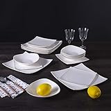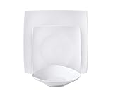 HomeVss, Bone China Square Shape, Elegance White 18pc Dinnerware Set
