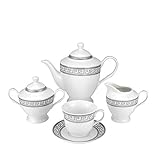 Royalty Porcelain - Royalty porcelain 20pc silver greek dinner set for 4 superior quality bone china porcelain Makes a unique and sophisticated gift dishwasher safe Made in czech republic jS Designer collection Set includes 4 x dinner plates 4 x soup plates 4 x salad plates 4 x cups 4 x saucers Dimension 105w dinner plates 85w soup plates 75w salad plates cup 3h x 3w 6 oz capacity 6 saucer