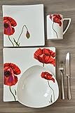 Red Vanilla - Chip and stain resistant Warmoven microwave and dishwasher safe One 1 1012inch square dinner plate one 1 8inch square salad plate one 1 8inch square soup bowl one 1 mug with a 13ounce capacity Bone china White with pattern