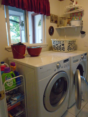 I mentioned before that I gave my laundry room a mini makeover by swapping the washer and dryer as well as re-running the vent, lines and drain. It has made a huge difference in how this room looks and feels now simply because the appliances fit better in that room. I never realized just how having them sticking out a few inches further than they should've would impact the function of that room. Now that the appliances sit back it makes the room feel more spacious and everything looks so much neater. I absolutely love it. Now my laundry room is definitely not Pinterest worthy by any means, but I do like it to look nice and I've place the items we have and use in there in such a way to make it not only useful but also decorative. It has been really nice and I enjoy doing our laundry even more now.