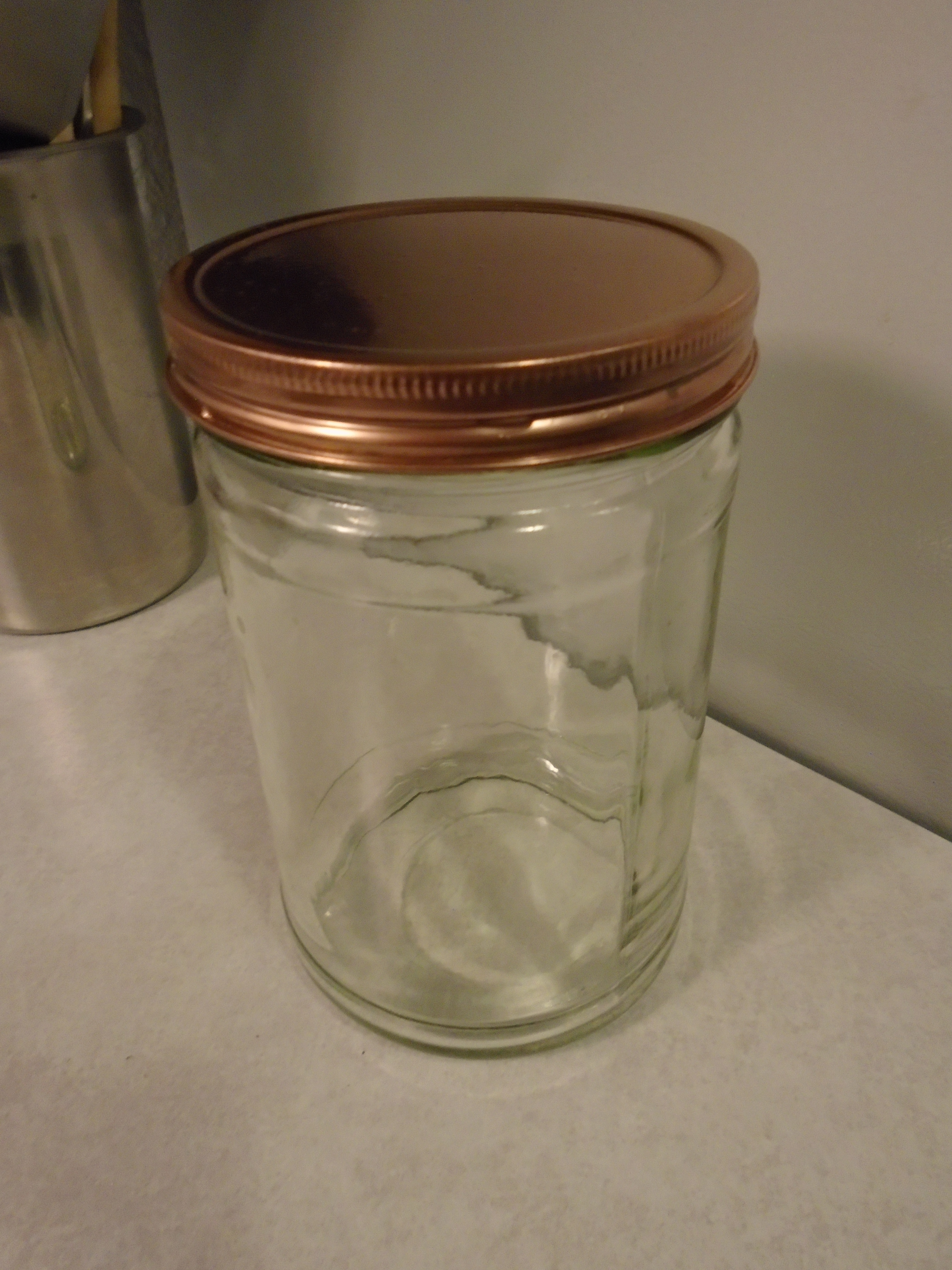 And another small fun project I did was to upcycle another glass peanut butter jar as well as one of my Snapple bottles. It was super quick and involved some copper spray paint I had in the garage. I gave the lid to the jar and the bottle a few coats of the paint and allowed them to dry overnight. Now I have a new canister for my flavored coffee as well as a bottle for olive oil I keep in my spice cupboard. Just that little extra touch makes such a difference in how they look and feel to me. No extra cost for me to repurpose a couple items that most people would toss in the recycle bin or trash and I fulfilled a need I had for a couple containers. I added some new coffee scoops to my Amazon order and I just love my new coffee canister.
