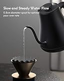 No more settling for uncontrolled water flow our precise pour gooseneck kettle has a unique curved opening and elongated spout for steady water flow you can now pour the exact amount of water needed and at a steady controlled speed when making pour over coffee the gooseneck spout ensures that all coffee grounds can be saturated evenly to extract full flavor potential