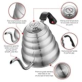 Kaibibi - 4 Never rust triple layer metal base the gooseneck kettle works on all stovetopsgaselectricradianthalogeninduction stove and stays rustfree and safe for decades It is a very good quality pour over coffee kettle 2 Builtin thermometer easy to use if you are a fan of pour over kettle with the thermometer this is the best choice The coffee kettle thermometer that is super easy to read when the water gets to the desired temperature to make delicious pour over coffee Brewing your great pour over coffee at the optimal temperature 195205f Perfect gadget for pour over coffee lovers 1 Enjoy better coffee at home our pour over kettle is designed a gooseneck spout for precise water flow As we all know precise and steady water flow is essential in making drip coffee or pouring over teaIt really does help even the pour and bring out the flavor of the grounds more You can make perfect coffee for yourself your lover your families 12l max capacity dont pour too full in case of overspill
