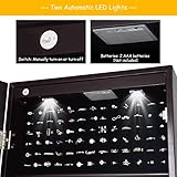 Led light lockable cabinet 6 auto on and off led lights powered by 3 aaa batteries not included making this cabinet helps you easily to choose the right jewelry keep your jewelry safe and far away from kids with the lock Decent size overall size 472 h x 146 w x 38 d120 x 37 x 97 cm
