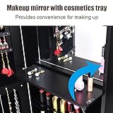 Bonnlo Jewelry Armoire with Keys, 2 in 1 Wall Mount and Door Hanging, 47 inch Magnetic Mirror