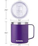 SUNWILL - Premium 188 stainless steel the insulated coffee mug is made from premium 188 kitchen grade stainless steel never rust lead free easy wash and unbreakable Each cup is powder coated for a durable finish longlasting texture touch not slippery no scratching peeling or fading Bpa free pressin lid the ecofriendly lid is completely bpa free silica gasket seals to achieve maximum spill proof capability Wide mouth drinking hole on the top straw friendly with sliding cover to keep bugs and dust out for drinking at your beautiful garden The sliding cover is to prevent heat cold from escaping It is not leak proof