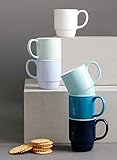 Stacking base these stackable porcelain mugs are easy to store neatly and compactly The intention of the stackable design is much more than space saving It also adds a touch of neat on your kitchen No more mess Bright assorted coloring sweese stackable mugs have industryfavorite traditional contours and assorted color adds an elegant feeling and soft your coffee time The sleek mugs are sure to create a dining experience your guests wont soon forget
