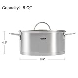 High quality material this 5 quart stock pot is made of food grade 304 stainless steel and covered with extra 403 stainless steel at the bottom It is sturdy and durable rust proof and pfoa free provides longterm safe use ideal for healthy cooking