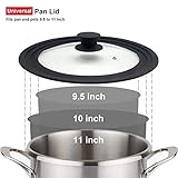 The perfect fit this incredible glass lid was specially designed to fit all your cookware perfectly so you will never have to waste time looking for the right lid Use it to cover pots pans and skillets its universal design can fit 1112or 12528cm 30cm and 32cm and 7 8 and 85 18cm 20cm 22cm pots and pansAlso works for instant pot perfectly