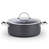 Cooks Standard - Has a hard anodized surface that is durable and harder than stainless steel Heavy gauge aluminum for even heat distribution and prevents hot spots Nonstick for food releasecleaning dishwasher safe recommend hand wash Tempered glass lid with stainless steel rim oven safe to 500f lid to 350f Included components 7qt dutch oven with lid