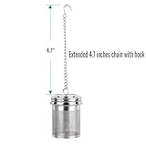 Upgrade fine mesh ultra fine micromesh prevent almost all of the solids from getting into the water even very fineleaved teas such as rooibos herbal teas and green teas and you wont be bothered by a mouthful of tea residue The attached chain and hook allows you to hang the tea balls from a teapot tea cup coffee mug panhandle or stockpot Simply twist the top to open and close them Best choice this stainless steel tea infuser can be used for all types of loose leaf tea or spices Also its good kitchen gadget for cooking meat or soup Its a great choice for black friday cyber monday wedding party mothers day fathers day grandparents tea lovers birthdays