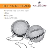 U.S. Kitchen Supply - 2 professional tea ball strainers set of 2 premium quality durable 21 diameter stainless steel tea ball strainer infusers with extra fine mesh Theyre made with a rustproof extra fine wire mesh screen that catches finer particles and that ensures particle and debris free steeping The attached chain allows you to hang the tea balls from a teapot tea cup coffee mug panhandle or stockpot Easy to clean and dishwasher safe The perfect cup of tea every time the secret to getting the full flavors out of your teas is by using a quality tea ball strainer Our tea ball strainers allow the loose tea leaves to fully expand while steeping so you get that perfect fresh cup of tea every time use use them