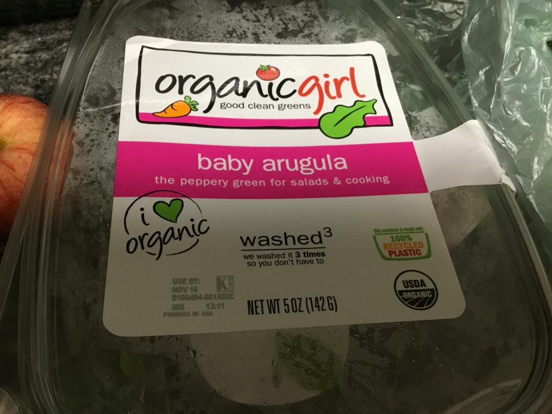 Arugula is a peppery, light and airy, green that makes a great base for her festive salad.