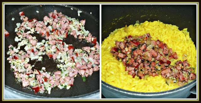 - 1/2 cup finely diced andouille sausage OR smoked turkey sausage