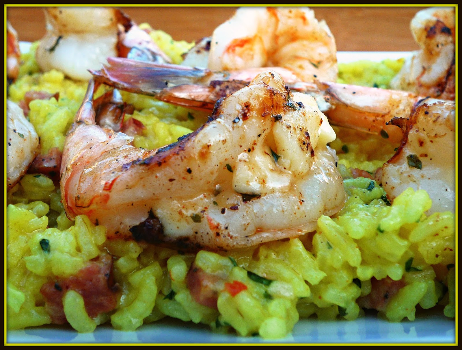 Goodness, this is one fabulous dish! The sweet Gulf shrimp cook up plump and juicy...and the spice level of the glaze provides just enough heat. If you prefer your food more fiery, add a bit more hot sauce -- or even a pinch of cayenne pepper -- to the basting sauce. The pilaf is colorful and full of big flavor. This dish is perfectly paired with a simple chilled salad using crisp in-season veggies.
