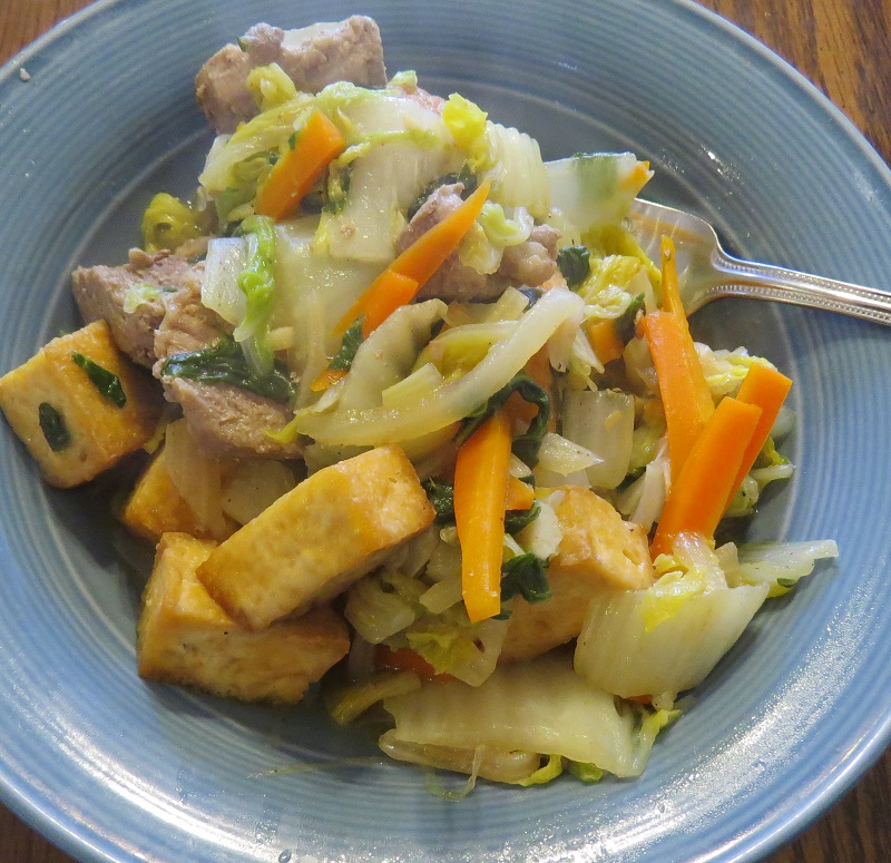 Dinner–Fish Patties, leftover Spanish rice, leftover cauliflower & cabbage