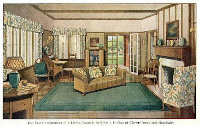 First let me share the blurb beneath the picture: "The first requirement of a living room is to give a feeling of cheerfulness and hospitality."