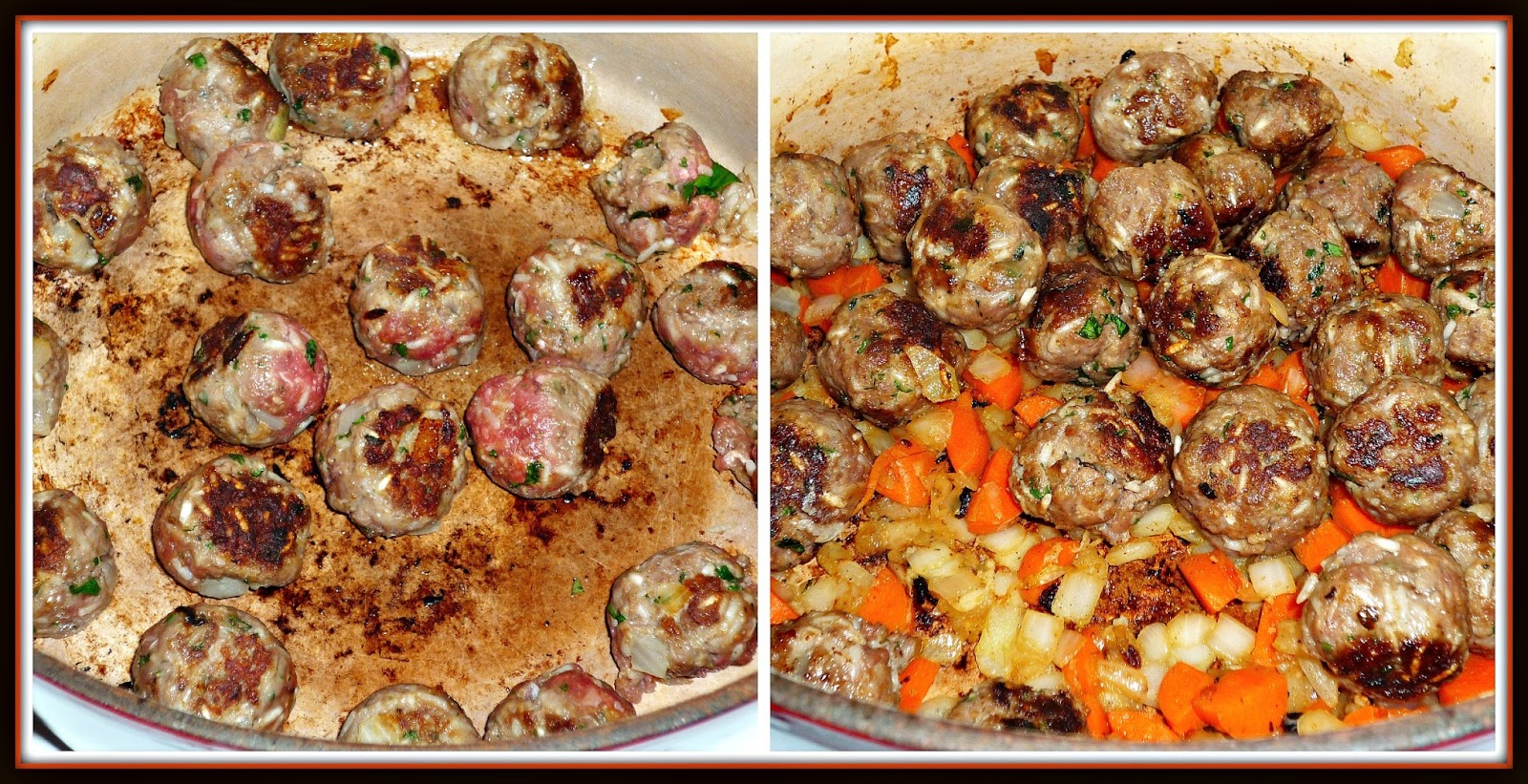 Step 2: Add 1 tsp. of heart-healthy oil to the Dutch oven, then heat over Med-High heat. Brown half the meatballs and remove from Dutch oven. Repeat with the remaining teaspoon of oil and remaining meatballs. Set the browned meatballs aside. Add the onion, garlic, and carrot to the Dutch oven. Cook for 5 minutes, stirring occasionally. Add the reserved meatballs back to the Dutch oven, on top of the vegetables.